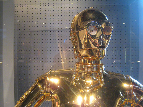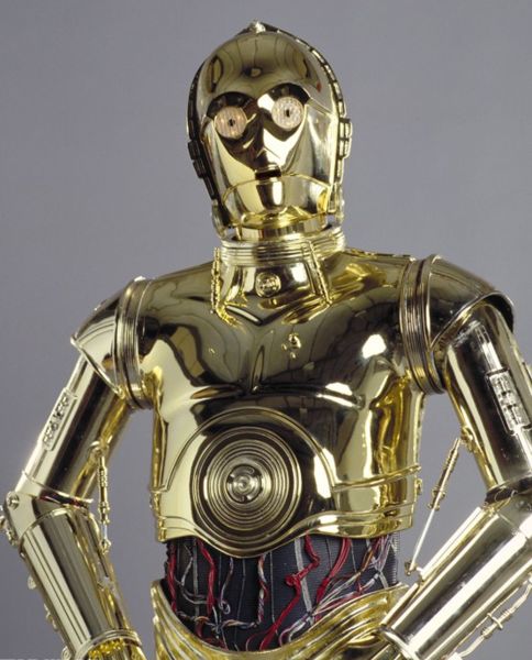 C-3PO, also spelled See-Threepio, also called Threepio for short, was a protocol droid—a droid specifically designed to interact with organics. C-3PO's TranLang III Communicator module combined with his AA-1 VerboBrain allowed him to be fluent in over six million forms of communication. He was also equipped with over thirty secondary functions. C-3PO was generally seen with his counterpart, R2-D2, a small, wheeled R2-series astromech droid. C-3PO's main function as a protocol droid was to assist with etiquette, customs, and translation so that meetings of different cultures ran smoothly. In his time, C-3PO loyally served over forty masters. He hated adventure and space travel, as they often resulted in him coming out on the wrong end of a fight, losing parts, and having them reattached, sometimes incorrectly. Along with R2-D2, C-3PO played a pivotal role in galactic history, however lowly he may have thought of himself.